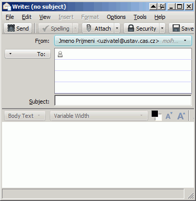 Kromě toho musí být při vytváření správy v položce Od (From) vybrán účet s vaším ústavním emailem: