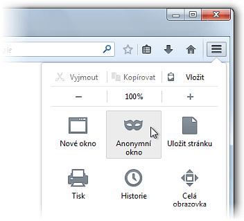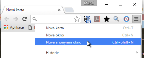 Otevření anonymního okna v Google Chrome nebo Firefoxu podle obrázku, nebo Ctrl+Shift+N: