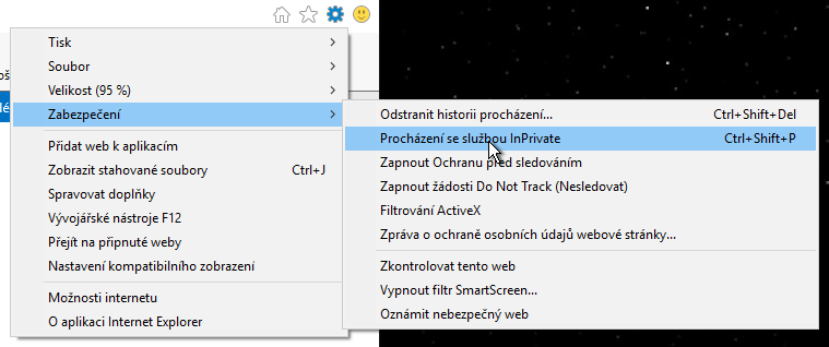 V Internet Exploreru se to jmenuje InPrivate (Ctrl+Shift+P):